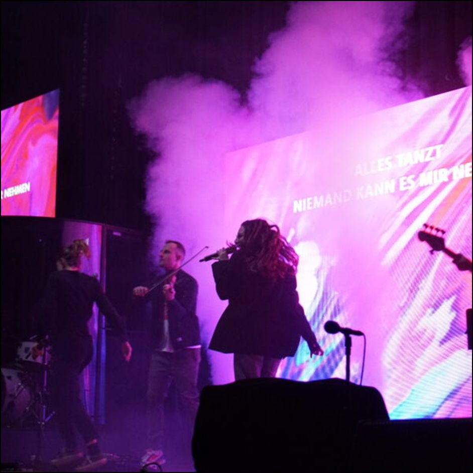 Zu den Künstler*innen des Springfestivals gehört u.a. auch Leuchtwerk, ein christliches Bandkollektiv aus der Rhein-Main-Region. 2023 entstand im Rahmen eines Auftritts in Kassel dieses Foto. [74]